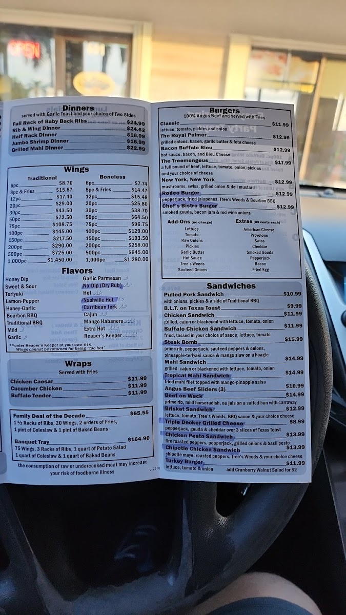 Introducing the menu at Tree's Wings & Ribs is a gastronomic delight that invites you to experience comfort food at its finest. Nestled in Royal Palm Beach, this family-owned restaurant specializes in finger-licking wings and tender ribs that keep patrons coming back for more. The lunch menu features fresh salads and wraps, such as the astonishing Classic Caesar Salad and the packed Chicken Caesar Wrap, all at affordable prices.